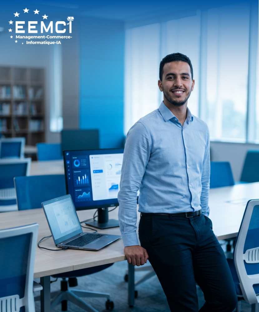L’EEMCI est une institution d’excellence, bâtie sur des valeurs humaines et professionnelles profondes, avec l’ambition de former les pionniers de l’économie de demain, capables de répondre aux aspirations des marchés nationaux et internationaux. Notre mission fondamentale est d’inspirer nos étudiants à incarner un professionnalisme remarquable, une vision stratégique authentique et une expertise d’exception en Management, Commerce International et Informatique. Ces qualités vous prépareront à devenir des catalyseurs de transformation et des champions de l’innovation et de la croissance, prêts à impacter positivement le monde des affaires.